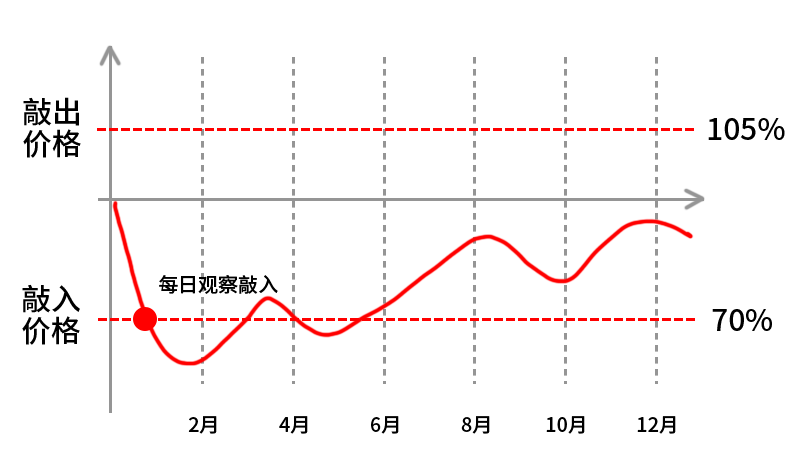 每月觀察一次,前兩個月觀察日不觀察敲出 |