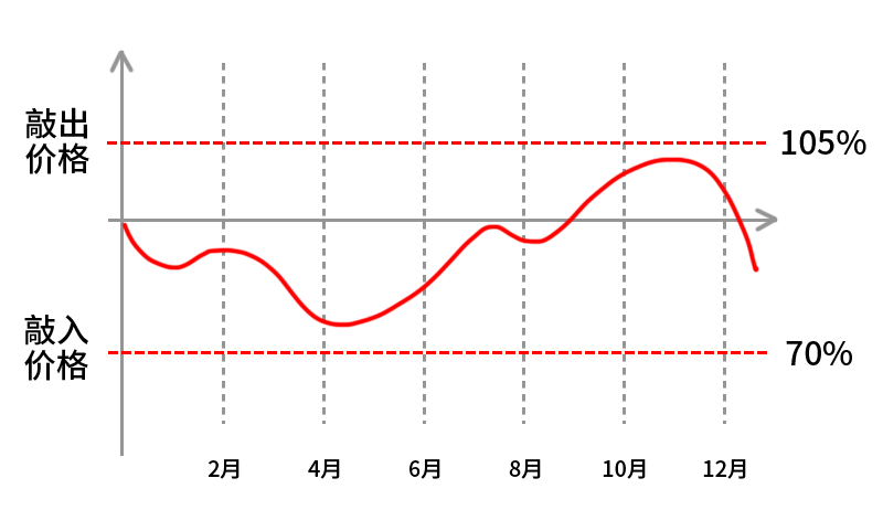 損益情形三、未觸發(fā)敲入和敲出事件。假設(shè)在產(chǎn)品持有期的12個月內(nèi),中證500指數(shù)在5200點和7200點之間震蕩,均沒有觸發(fā)敲入事件(低于4900點)和敲出事件(高于7350點),那么產(chǎn)品滿12月后到期結(jié)束。投資者共持有產(chǎn)品12個月,獲得1000000*18%=180000元的收益。如下圖所示: